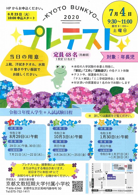 これは、おなじみ。年長者対象のプレテストの広告です。明日10時よりHPにて申し込みを受けつます。(定員48名 先着順)