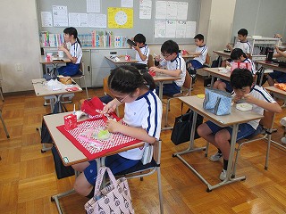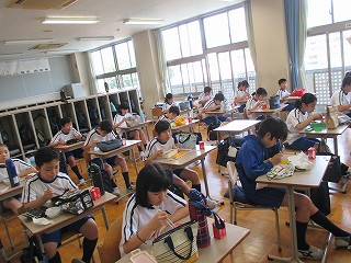 4時間の終わりごろになると、「おなかへった・・・」とつぶやく声が。 お楽しみのお弁当が待ちきれないようです。
