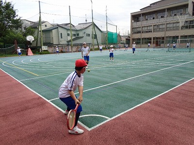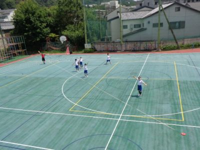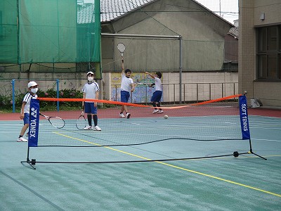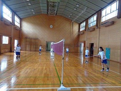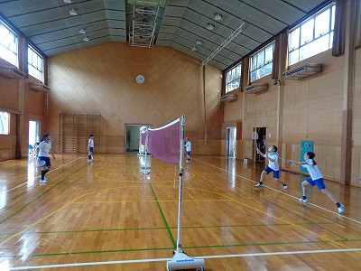 学年ごとに分かれてラリーやサーブ、スマッシュの練習を行いました。