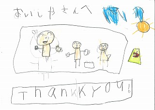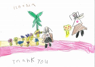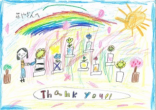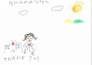 今週は1年生からのメッセージです。英語の授業で、いろいろなお仕事の英語名に触れたあと、"Thank you"を添えて仕上げました。