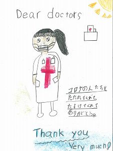 「コロナの人たちとたたかってくれて、たすけれくれて ありがとう。」