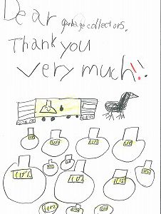 今週は3年生からのメッセージです。英語の授業で、いろいろなお仕事の英語名に触れたあと、"Thank you very much." を添えて仕上げました。