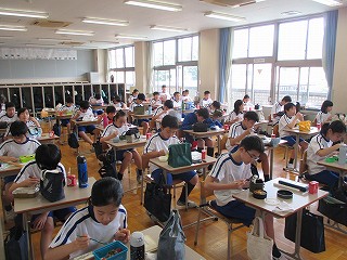 太陽のひかりが暑い1日でした。お弁当タイムの牛乳をいつもより早めに、ストローを準備して飲む様子がありました。