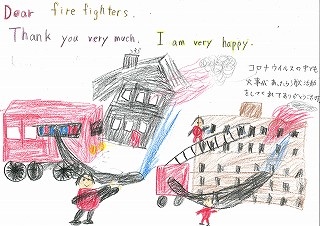 「コロナウィルスの中でも 火事があったら消火活動をしてくれて ありがとうございます。」