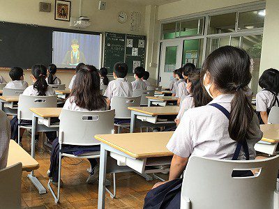 放送礼拝・終業式後に、各教室でれんげ班の紹介VTRを見ました。