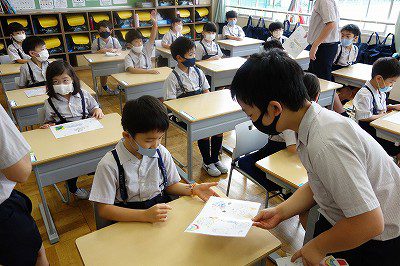 お互いちょっと照れたりして言葉少なめな様子もありました。でも、6年生が一生懸命 心を込めて描いたイラストや言葉に、受け取った子ども達は 喜びがこみ上げてきた様子でした。
