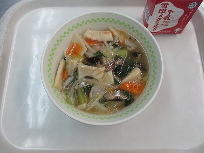 野菜は「緑黄色野菜・淡色野菜」の二つに分けることができます。今日の中華丼には「チンゲン菜・人参」2種類の緑黄色野菜が使われています。ビタミンAに変わる「カロテン」を多く含み、目や皮膚、粘膜の健康に欠かせません。皮膚や粘膜の健康はウイルスや菌が体の中に侵入するのを防ぐ効果があり、毎日元気に過ごすための大事な栄養素です!