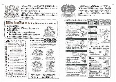 9月1日は「防災の日」、9月9日は「救急の日」です。今週お渡ししたほけんだよりにも、「防災の日」「救急の日」のことを載せていますが、見てもらえたでしょうか?