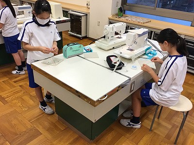 今日のECO生活クラブは前回の続きで、「鍋つかみ」作成に取り組みました。布は余り布も活用しています。