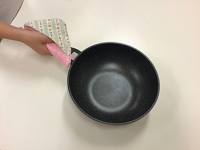 フライパンの取っ手も、しっかりつかめます!ぜひ、お家でもご活用ください。