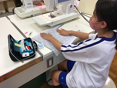 今日のECO生活クラブは「エコバック作成」第2回目です。前回、難しい工程に苦労しましたが、今日は間違えないように、布を折って縫い合わせていくだけです。