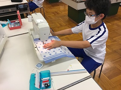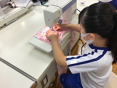 直線を縫う作業ですが、布を重ねて縫わなければいけないため、ずれないように注意しました。