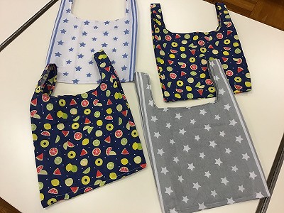 今日作った「エコバック」を利用して、学校の外でもECOを意識した生活が送れるように心がけたいですね。是非ご活用ください。