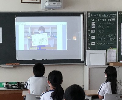 京都市動物園主催の動物画コンクールで、児童4人が入選しました。そのうちの一人は「京都市長賞」です。前日に撮影した表彰状を持つ子ども達の写真を、今回の校内放送で一人ずつ紹介しました。