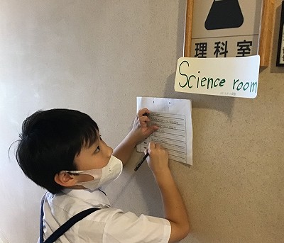 オリエンテーリングのようで、日頃は行かない3階教室などにも、探検気分でわくわくしながら行ったようです。