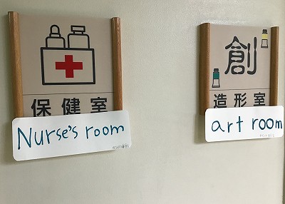 「ミッション」と題して、学校中に貼られた各部屋・場所のネームカードを休み時間に探しあて、記録していく英語週間です。