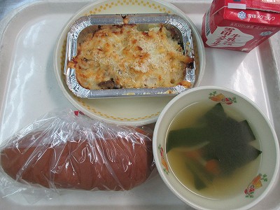 今日のグラタンは、豆乳を使ったホワイトソースで作られています。玉ねぎ、マッシュルーム、ブロッコリー、マカロニといろいろな具材が入っていますが、メインはホクホクのじゃがいもです。蒸し器でやわらかくしています。味付けはかくし味に味噌を使って、うま味たっぷりのグラタンになりました。