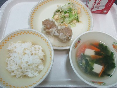 ピーマン、キャベツ、えのき、炒り卵を合わせたおひたしでした。ピーマンには、かぜを予防する効果もあるビタミンCが豊富に含まれています。体の免疫力を上げウイルスから体を守る効果や、肌の健康を保って美肌にしてくれる働きがあります。苦さが苦手な人も、おいしくいただきましょう!