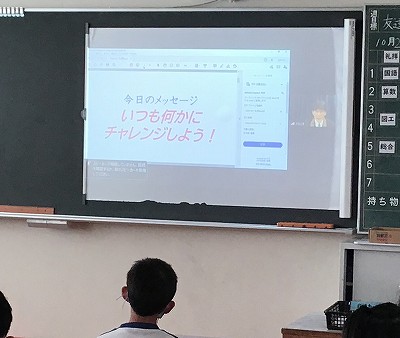 今日の校長先生のお話のテーマは「いつも何かにチャレンジしよう」です。