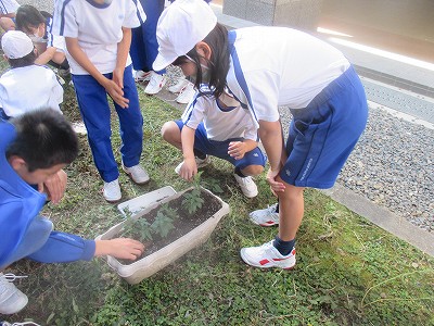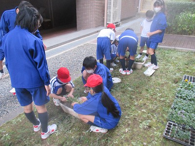 花の苗を、班のメンバーで和気あいあいと植える活動です。