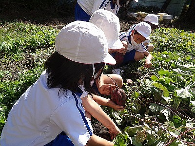 10/27火【Sweet potato harvest・むらさき色のバッタ!・給食】