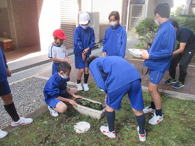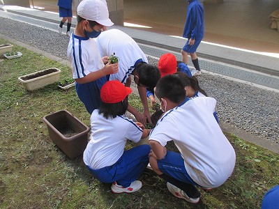 花の苗を、班のメンバーで和気あいあいと植える活動です。