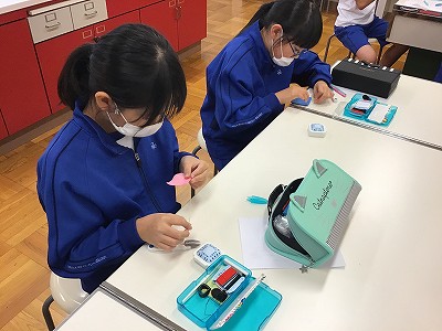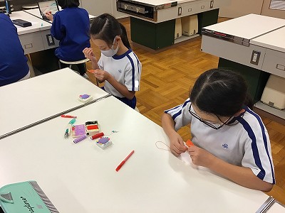 お家で裁縫を経験していた4年生、難しい玉結び・玉どめが上手にできています。