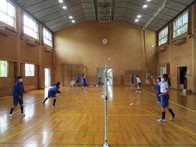 今日はクラブ活動後期の1回目です。用具の準備の仕方や注意点を説明し、二人組になって打ち合いの練習をしました。