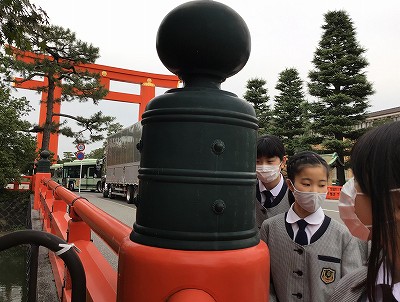 通りがかった1,2年生達は、興味津々で少し離れて見ていました。