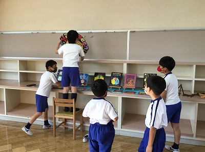 せっかくのボールを使える貴重な休み時間の5年生。それでも、そんなことは気にもせず、委員会の仕事にやりがいを感じてくれました。「せっかくだから、掲示の仕事を楽しまなくちゃ!」さすがです!