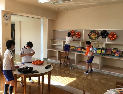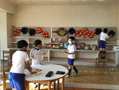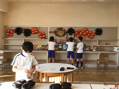 早速、昼休みには、ギャラリーの様相が変わっていることに気づいた文教キッズ達が、ハロウィンコーナーを楽しんでくれていました。ハロウィンの英語絵本が25冊あります。ぜひ、絵やイラストを楽しんだり、読んでもらえたらと思います。