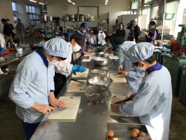 最初に、今日の調理に使う食材の説明を聞きます。実はこの食材、市場に出回らない魚類や穀類などを使用しています。調理にいろいろな工夫をするのがプロジェクトです!