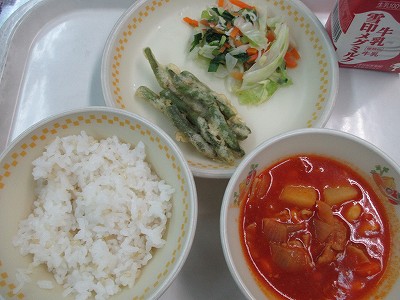 三度豆は「さやいんげん」とも呼ばれますね。江戸時代の初め、隠元禅師という中国のお坊さんが日本へ伝えた野菜だそうです。三度豆は「豆」の部分が小さく、たんぱく質がほんの少ししかありませんが、人が食べ物から摂らなければならない9種類の必須アミノ酸が全て入っている優秀な食べ物です。また、ビタミン類も豊富に含まれ、豆と野菜、両方の長所をもつ食べ物です。