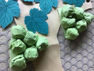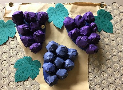 その後・・・、掲示のサツマイモも、手いっぱいに収穫した事務の大橋先生。今度は、ニンジンやブドウ編を作ってくれました!