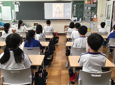 最後に【三密】の確認でした。京都でも、新型コロナウィルス感染症が徐々に拡大しています。早寝・早起き・朝ご飯で、好き嫌いなく食事をしっかり摂ること。そして、窓を開けて空気を入れ換えすること。友達同士でも、できるだけ離れて集まらないこと。お休みの日もできるだけ出かけず、密集を避けること、などのお話です。みんなでできる全ての対策をして、コロナ禍を乗り切りましょう。