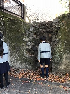 尊勝寺跡の詳しい看板を見つけてから、武道センター敷地に入り、武徳殿を間近に見る子ども達。担当のヨコヤマが、若かりし頃、ここで剣道の練習をしていたと聞いて驚いていました。(歴史発見より驚いていました)。武徳殿も歴史がありますが、それは今回はあまり触れません。