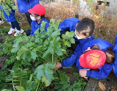 根の先が分かれて足のような形に見えたり、大きい大根や小ぶりのものなど、いろいろな大根がありました。人参、豚バラ肉と合わせて煮込み、調理しました。みんなでおいしくいただきました。