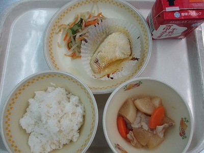 冬になっても、収穫の掲示が続きます。それは今週の火曜日に1,6年生が収穫したダイコン!早速、今日の給食で頂いたダイコンが主役です!