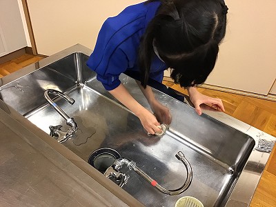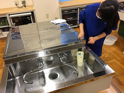 みんなでアクリルたわしの効果を確認しながら、黙々と掃除をしてくれました。
