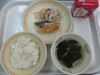 ほうれん草がたくさん入った「すまし汁」でした。冬の季節に旬を迎えるほうれん草は、ビタミンCや糖質が増えるため、夏より栄養価が高くておいしくなります。捨ててしまいがちな、赤い根っこの部分にはマグネシウムが特に多く含まれ、葉っぱだけでなく根も栄養価が高いのです。きれいに洗って是非食べるようにしたいですね。