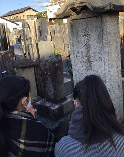 実は、頂妙寺は、その風神雷神図の絵師「俵屋宗達」とも関係があるのです。宗達のお墓と伝わる場所へ行き、静かに手を合わせました。