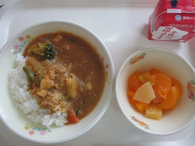「カレーに終わり、カレーに始まり...」という文教名物カレーです。栄養教諭の先生には、華麗に食の演出を頂きました。みんな黙々とおいしくいただきました。