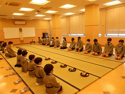 1年生が感謝の気持ちでお茶を点て、6年生がその気持ちを受け止めます。