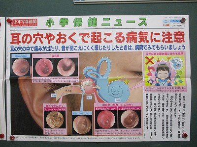 保健室に掲示してある「小学保健ニュース」も、耳をテーマにしたものにしました。