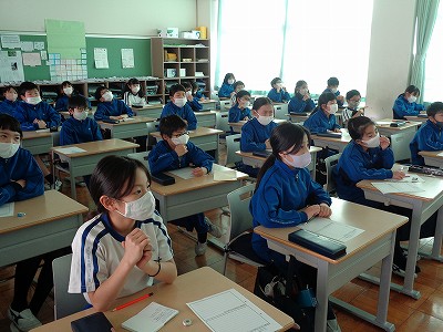 流暢な日本語で質問したり、説明して下さいました。学習プリントにお話内容を書き留めたり、ふと思ったことを書きつづる子ども達。