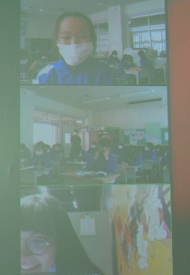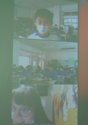 2つの学年の同時開催は、大変盛り上がり、楽しかったです。フランスの先生の声ばかりでなく、各学年の声の驚きの声・つぶやき・感想・質問が飛び交って、互いに思いを共有し、とても和やかな会になりました。