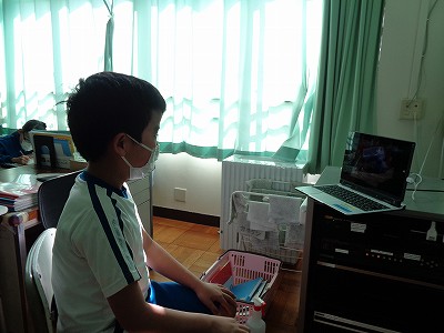 今日は、フランス人の先生が、母国についてオンラインを通して教えてくださいました。授業を受けるのは3・4年生です。普段の授業と同じように、それぞれの教室で実施しました。実は4年生は、昨年の今ごろに受講する予定だったのです。ところが3月。Covid-19感染拡大防止による突然の休校で、お話が聞けずじまいに...。1年越しで、2つの学年が同時開催という形で実現しました!