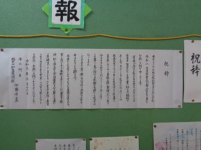 なお、本日の卒業式に際して、たくさんの祝辞を頂きました。誠にありがとうございます。