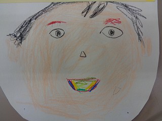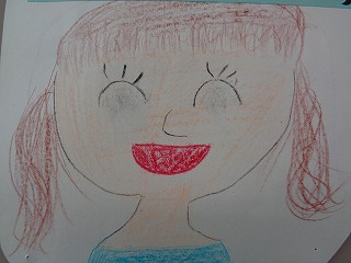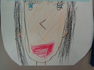机の上になつかしい絵を発見! 1年生の時に描いた自画像です。