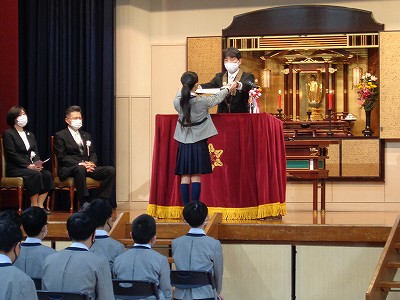 「感謝の気持ちを忘れないように」ということ。そして、「法然上人のみ教え(月かげの心)を基に、一層の精進をし、自己の持つ力を充分に発揮し、希望と生き甲斐のある充実した人生を送ってください」とのメッセージでした。